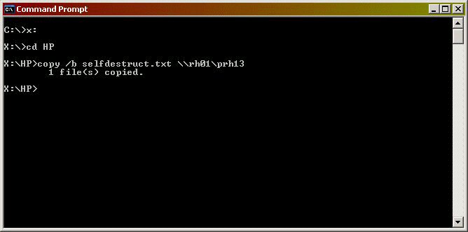 Now type 'copy /b <filename.txt> \\server\printerShareName' and press enter. (Replace <filename.txt> with the name of one of the files you downloaded. and replace \\server\printShareName with the server the printer is on and the share name of the printer.) If done correctly it should reply with '1 File(s) Copied'